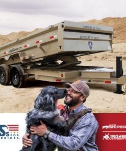 The Sniper Series DTB14 features a striking Sniper Sand finish and military‑inspired graphics that stand out on the job, while a portion of every sale supports the K9s For Warriors Foundation, adding purpose to your purchase. Built on a solid 6″ I‑beam frame and tongue, this dump delivers exceptional durability and load stability under heavy payloads.