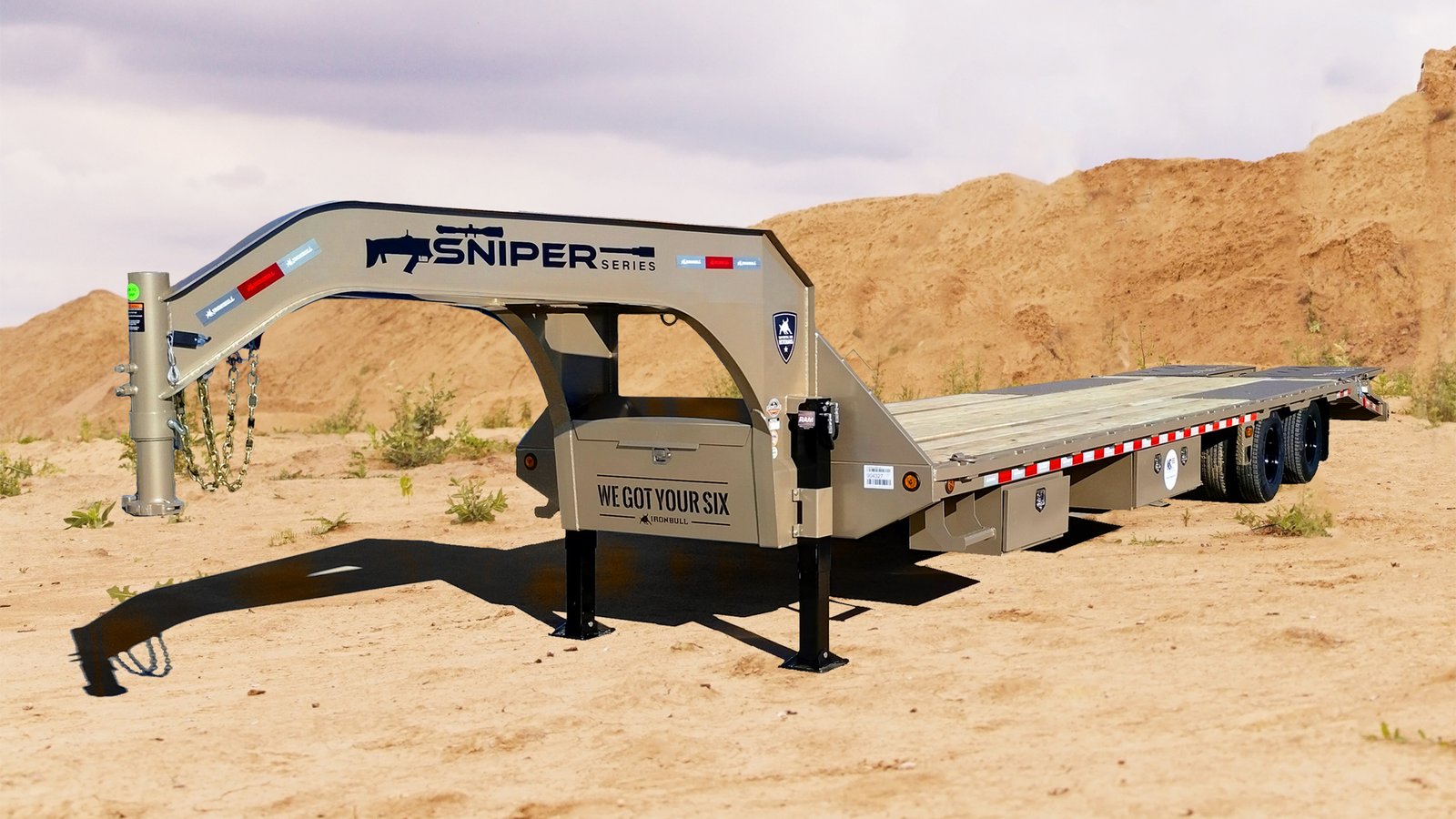 Every purchase of an Iron Bull Sniper Series trailer supports the K9s for Warriors Foundation, with a portion of proceeds donated to aid service dogs and veterans. Choose the Sniper Series FLG 22 Deckover Gooseneck Gooseneck Low‑Pro Equipment Trailer for a powerful, purpose‑built hauler that stands out on the road and gives back off of it.