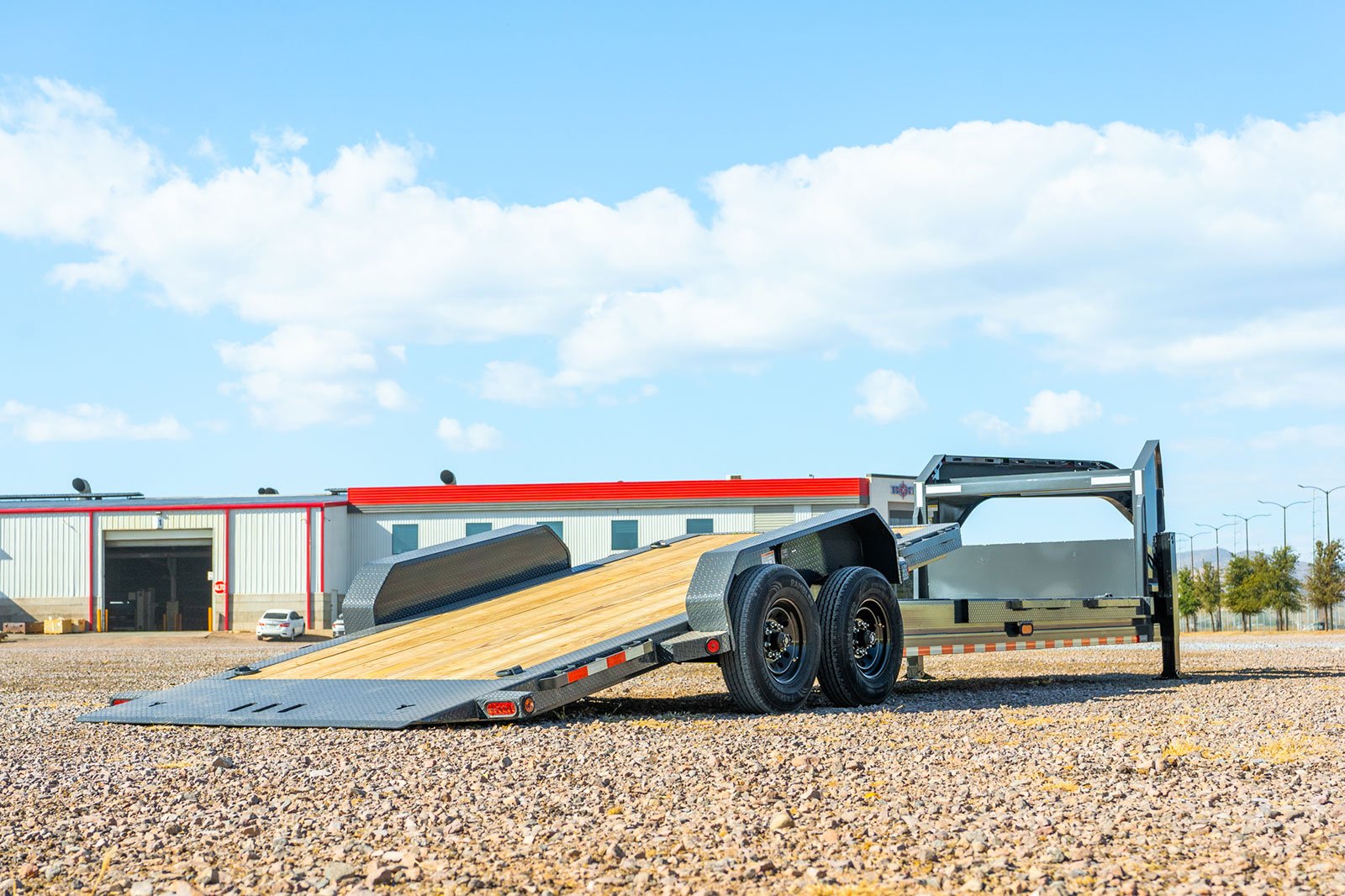 Engineered with a 20″ deck height, full 83″ clearance between the fenders, and an 11‑degree loading angle, the TLG14 Low Pro Tilt eliminates the need for high‑angle ramps and lets you slide, drive, or push loads on and off with ease. Whether you choose gravity‑tilt operation or full power‑assisted tilt up and down, this gooseneck tilt trailer brings versatility and speed to nearly any job.