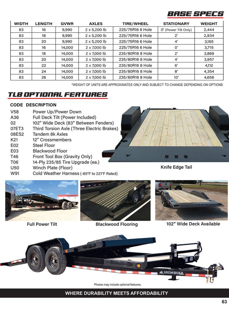 | 83″ | 23′ | 14,000 lb | 2 × 7,000 lb | 235/80R16 8 Hole | 10′ | 4,400 lb |